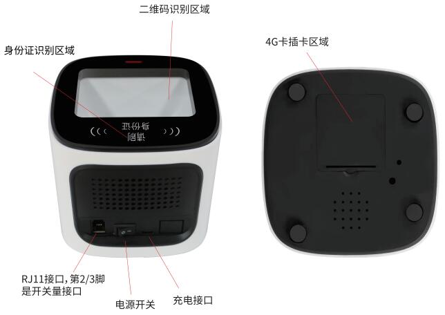 4操作說明 1.打開電源開關(guān),設(shè)備會(huì)自動(dòng)連接網(wǎng)絡(luò),連接成功后將語音提示網(wǎng)絡(luò)已連接成功。 ⒉健康碼驗(yàn)證通行,將健康碼置于掃描窗口上方約5-10cm位置,掃碼成功后會(huì)有語音提示,分別為(掃碼成功-綠碼-請(qǐng)通行,掃碼成功-黃碼-禁止通行,掃碼成功-紅碼-禁止通行)。 3.身份證驗(yàn)證通行,將身份證置于“請(qǐng)刷身份證”位置即可識(shí)讀健康碼數(shù)據(jù),識(shí)讀成功后會(huì)有語音提示,分別為(綠碼-請(qǐng)通行,黃碼-禁止通行,紅碼-禁止通行)。 4.電量不足時(shí)請(qǐng)及時(shí)充電,以保證設(shè)備正常使用。5.網(wǎng)絡(luò)連接續(xù)費(fèi)請(qǐng)聯(lián)系生產(chǎn)廠家提供續(xù)費(fèi)資料。