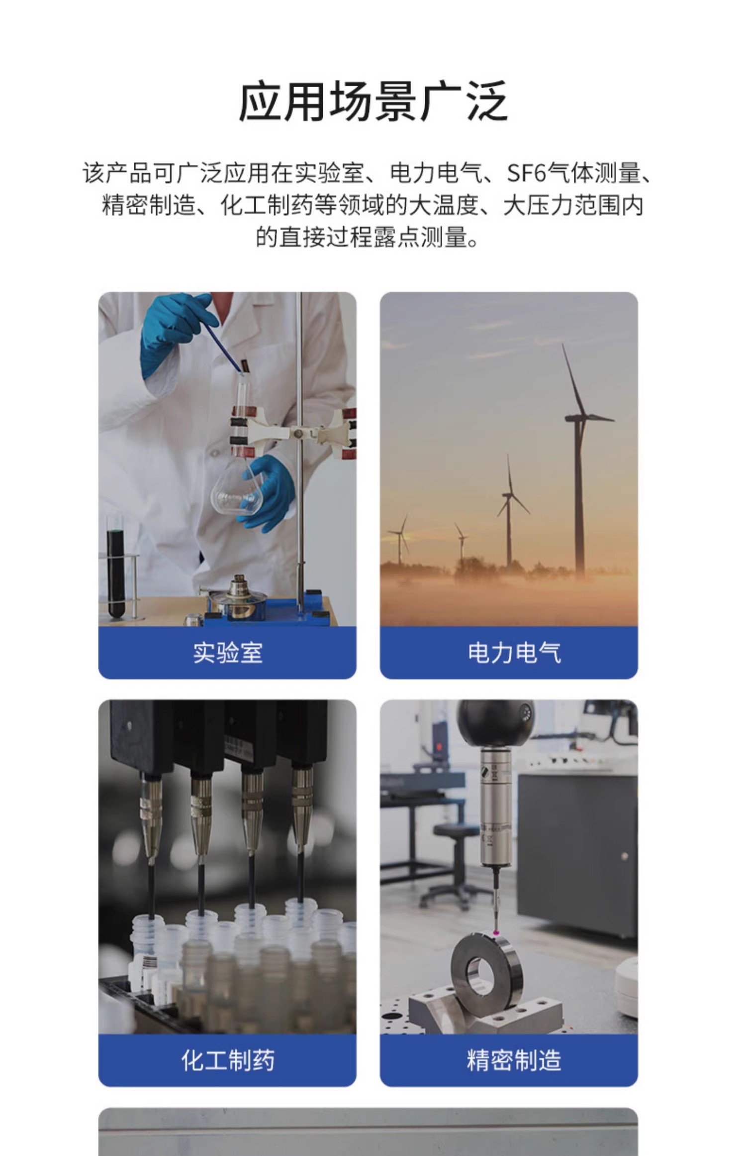諸如空氣干燥設備、塑料注塑設備、手套箱干燥設備、鋰電池水分檢測、氫氣、二氧化碳、水份檢測等。